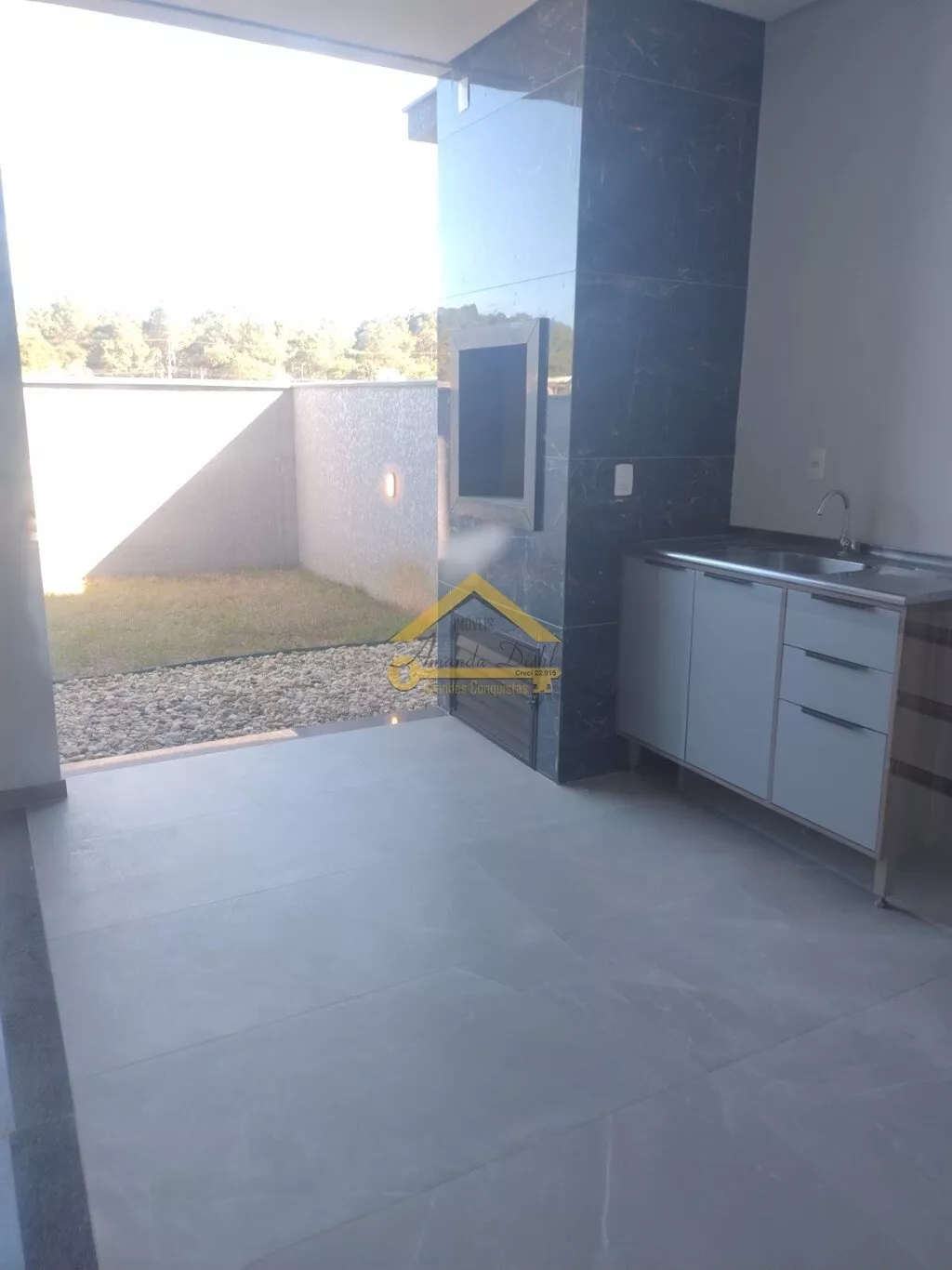 Sala de estar + Cozinha com sala de jantar e varanda com churrasqueira.