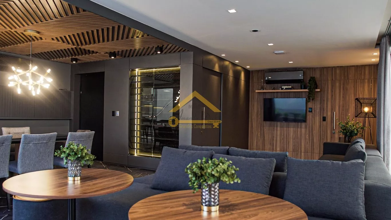- Áreas de lazer finamente decoradas, mobiliadas e climatizadas: Piscina com borda infinita e aquecimento solar,
