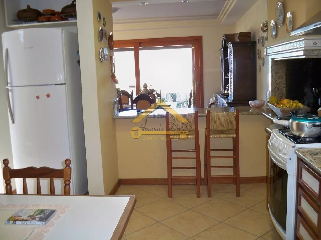 Cozinha com churrasqueira e mobilia fixa.