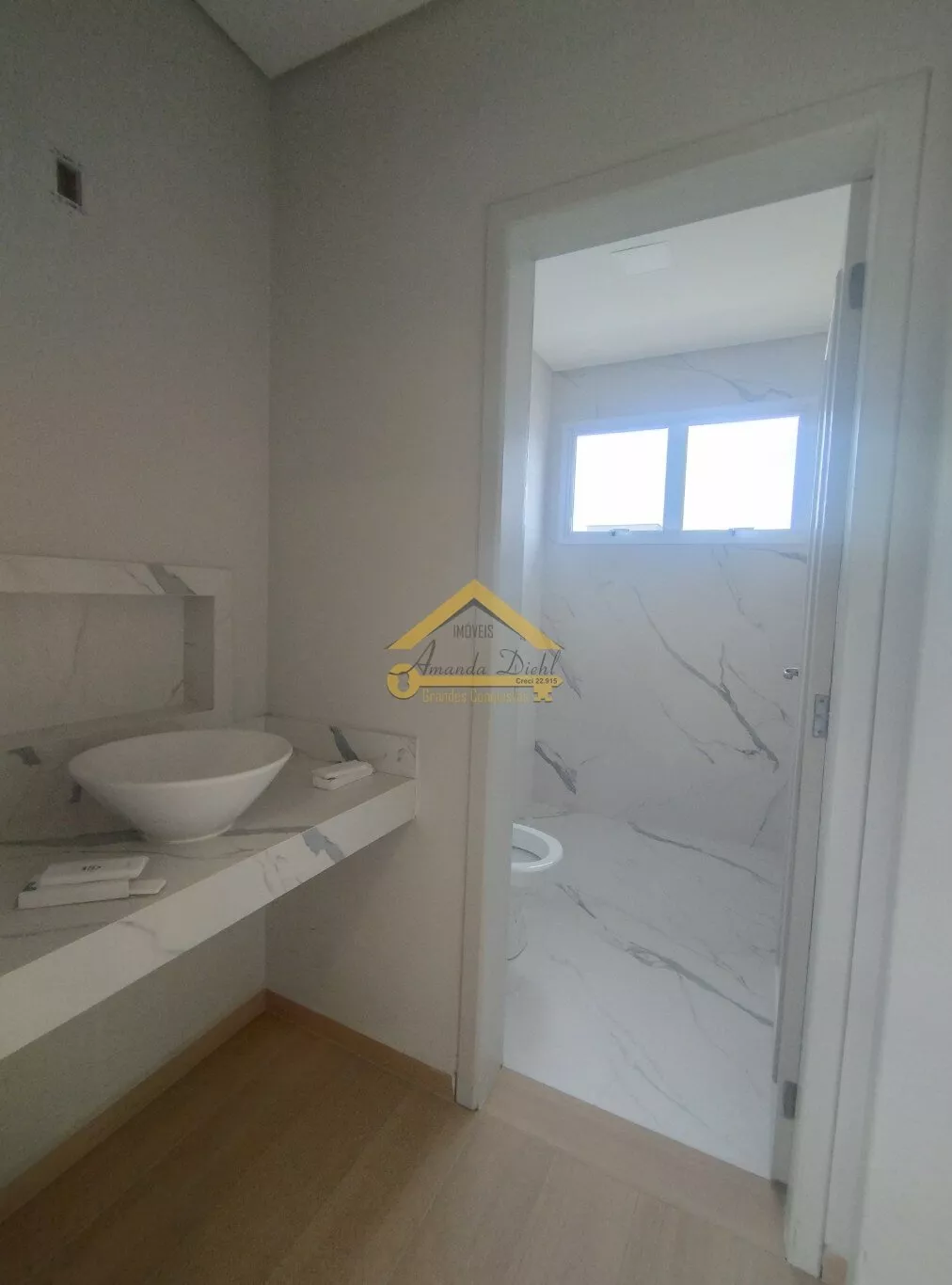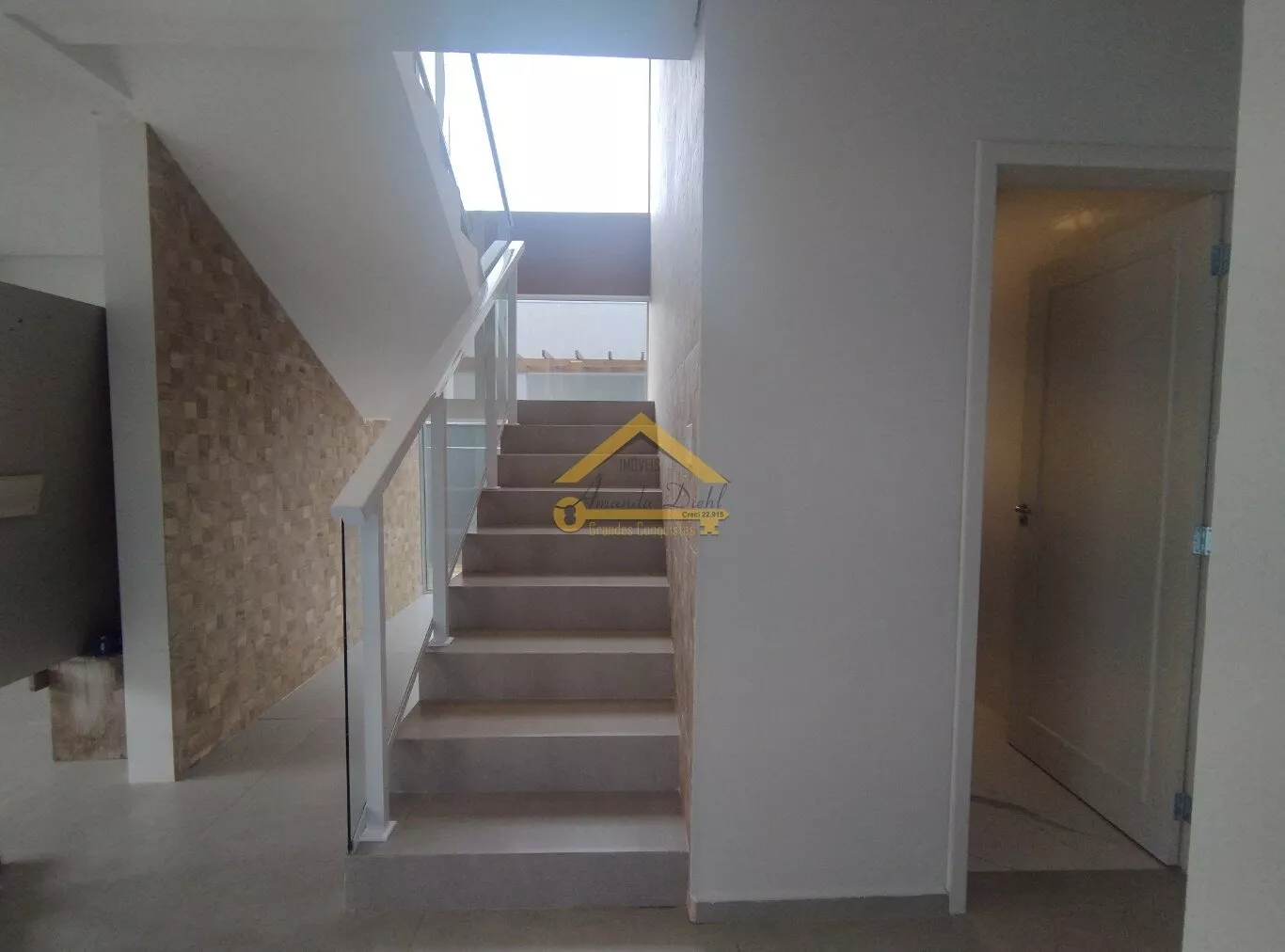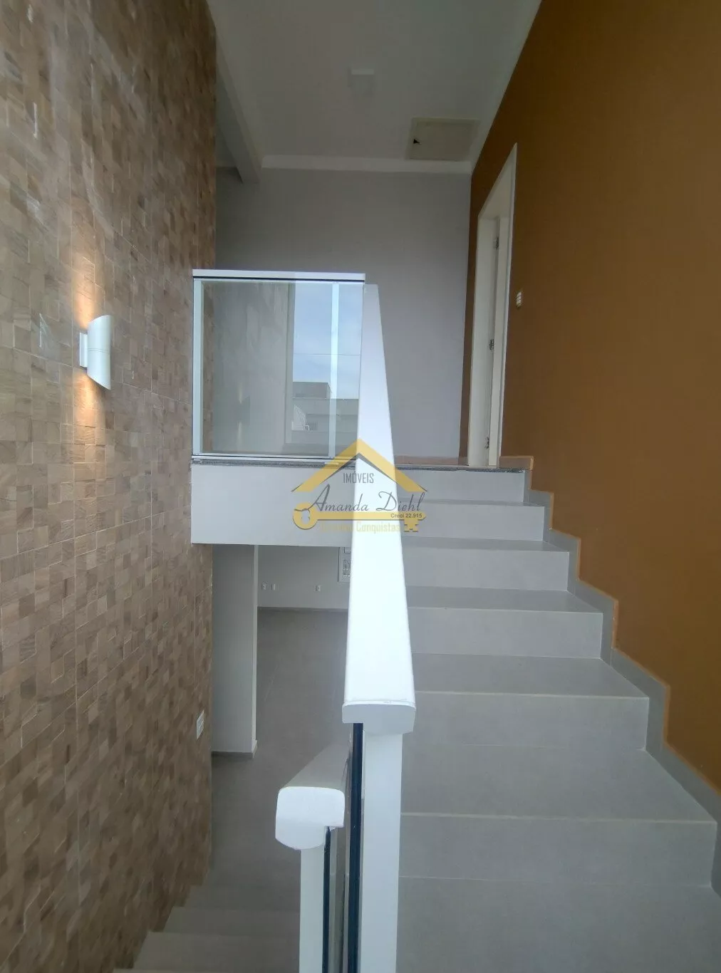 Pavimento Térreo – Composto por Sala em três ambientes, conjugada à cozinha completa com Garagem para dois veículos, escada e iluminação natural, área de lavanderia e depósito. Área construída de 137,64m².