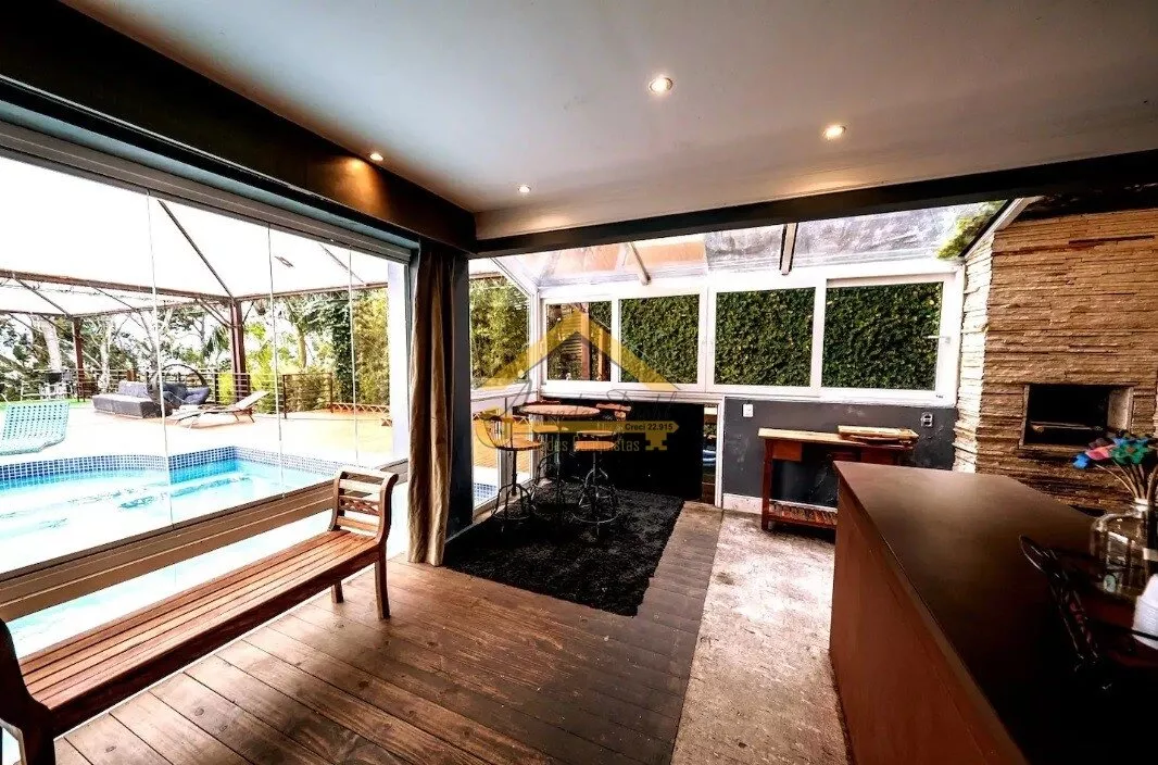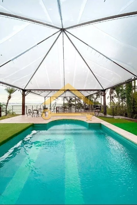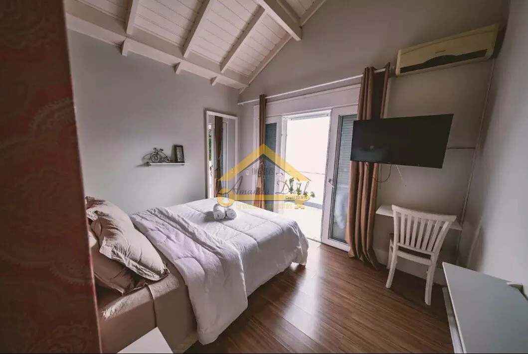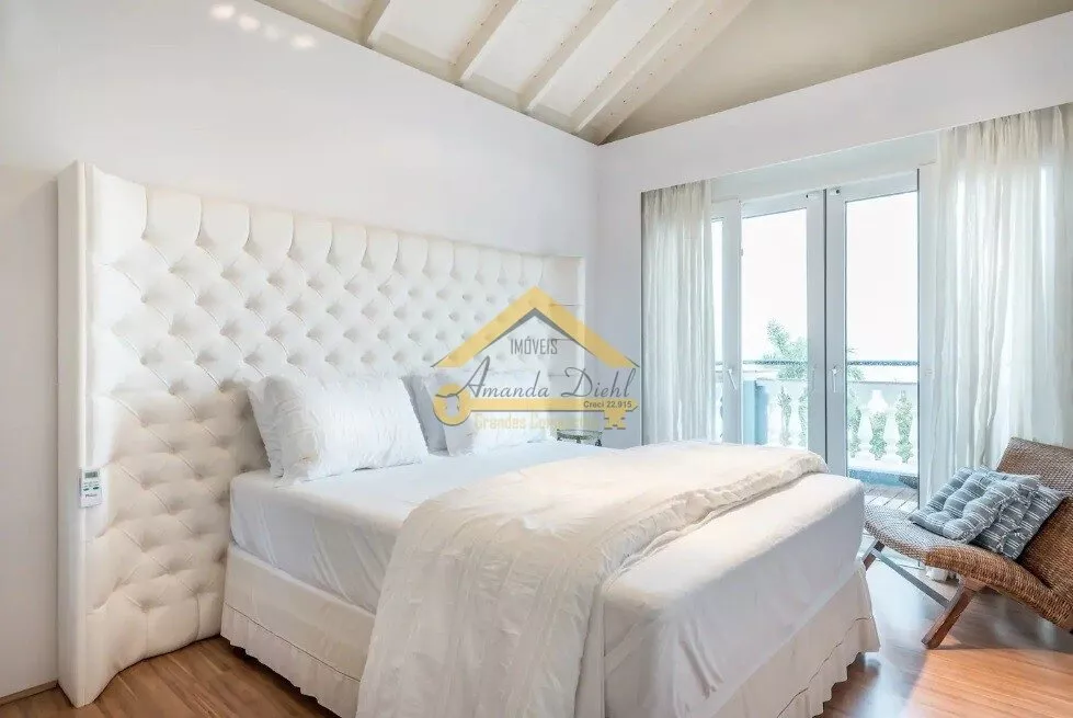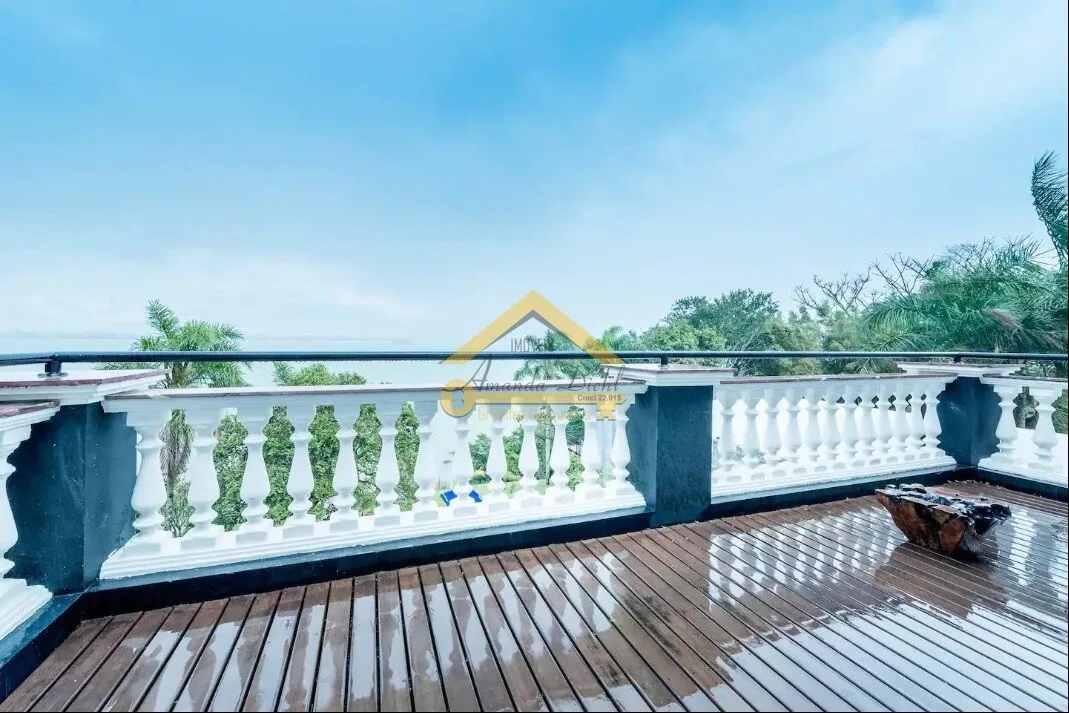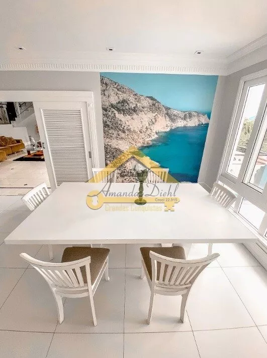Casa com 07 dormitórios sendo 06 suítes, Lareira, Sala de jantar e estar com vista para o mar.