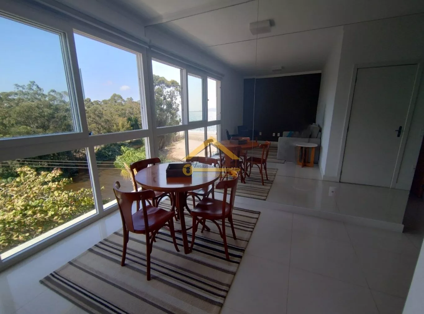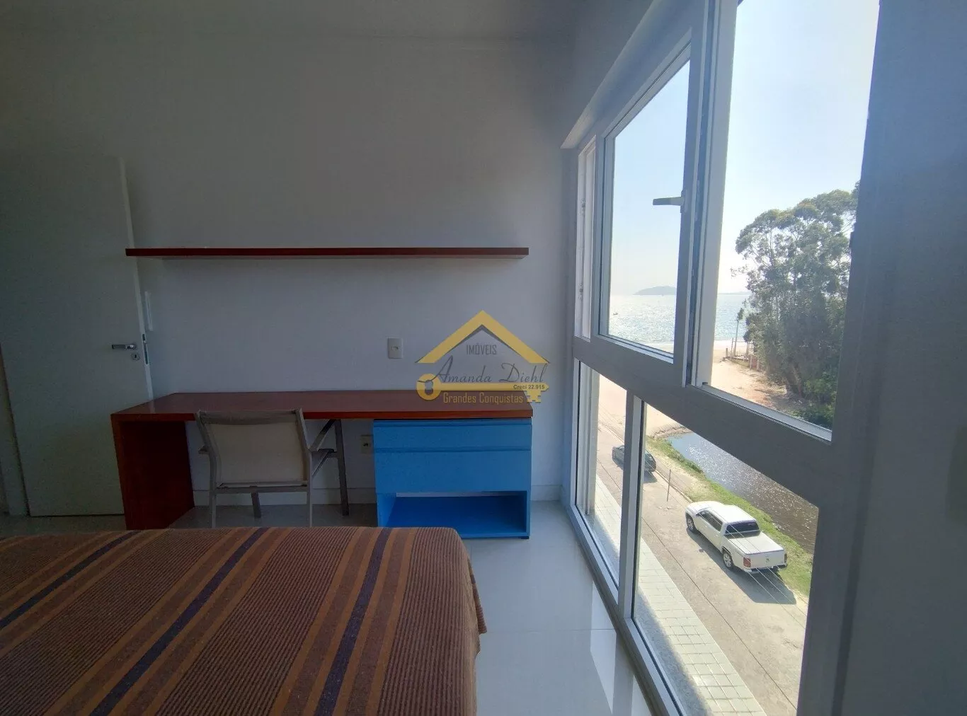 VISTA MAR da sala, de um dormitório e da área da piscina.