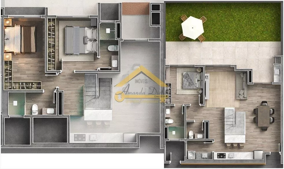 Duplex 02 = 124,86m² privativos +47,60m²jardim = R$ 1.342.000,00