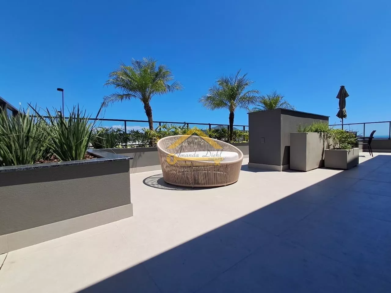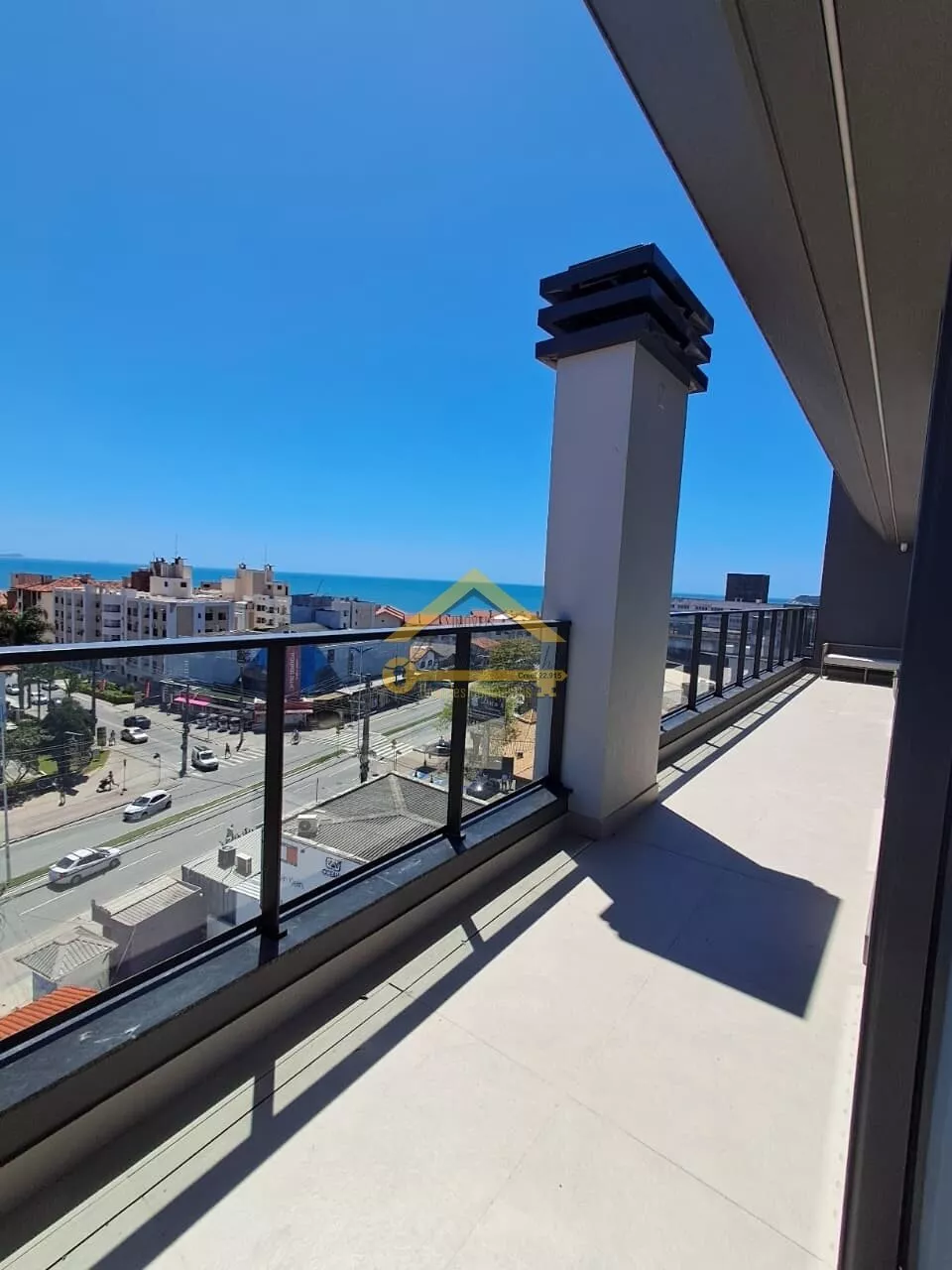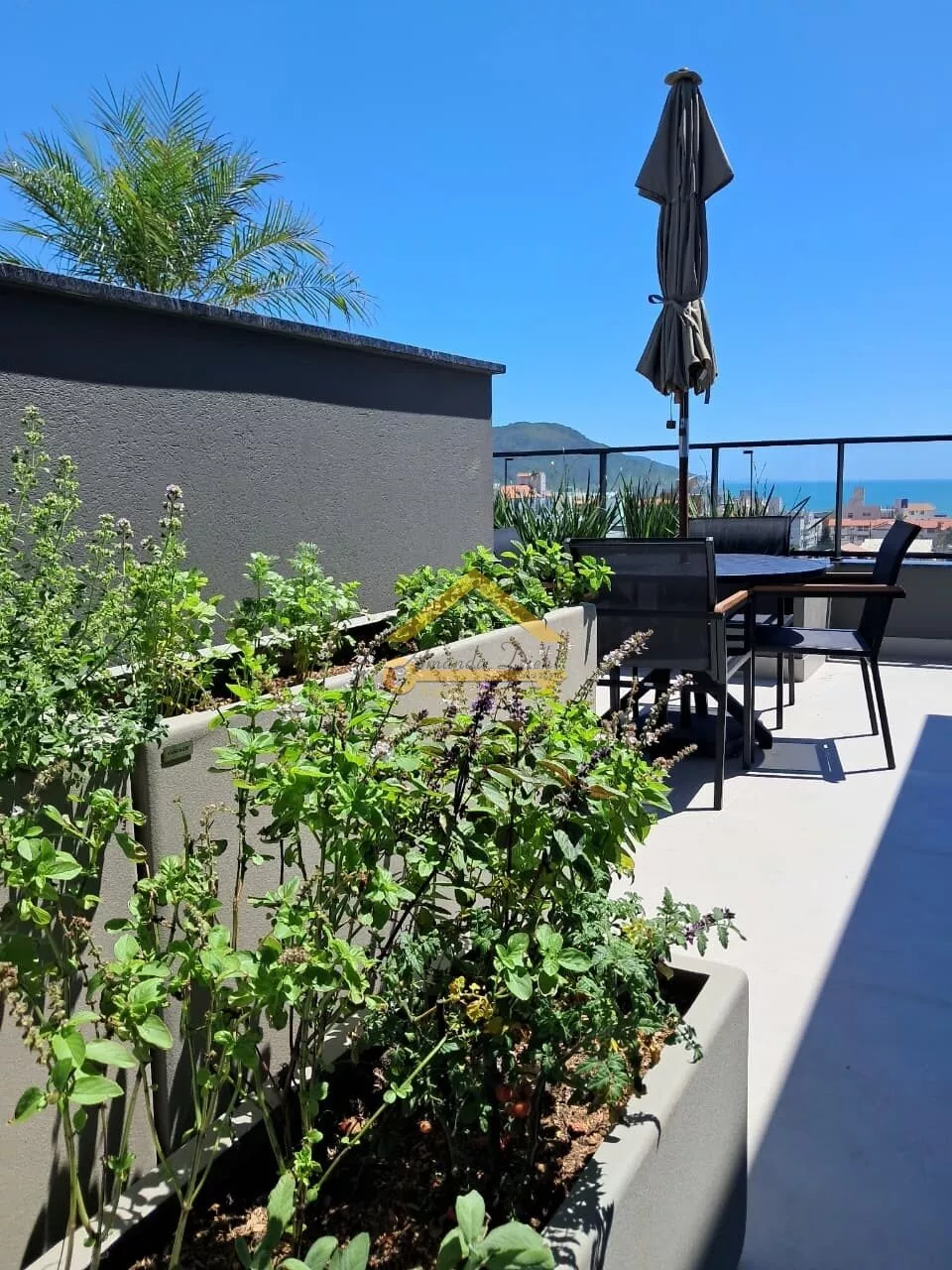 Rooftop com vista mar e área de lazer completa.
