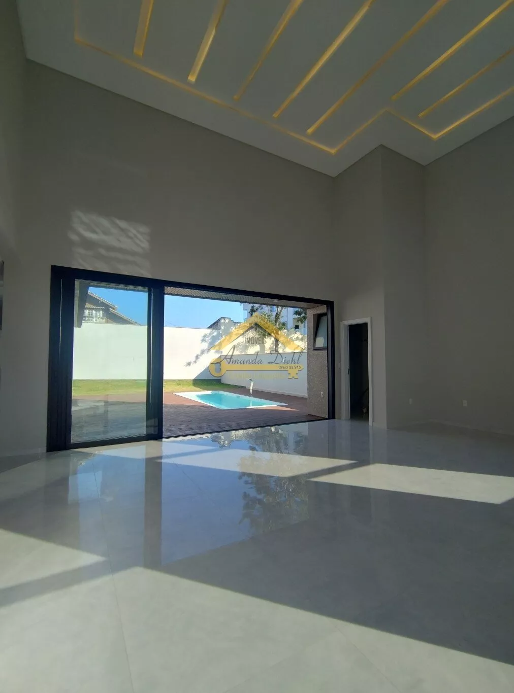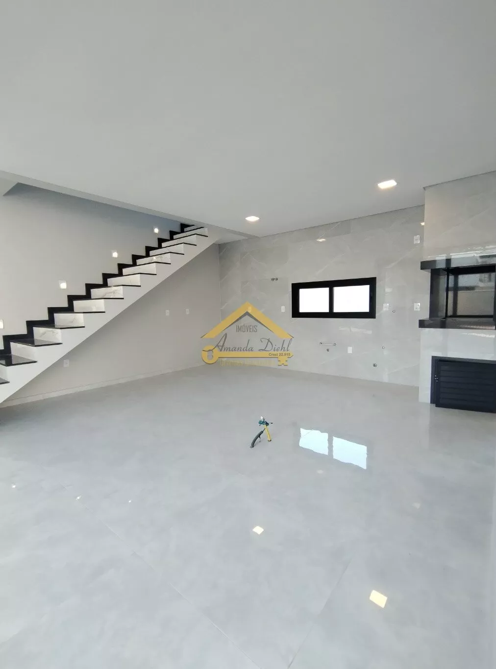 Piso térreo, Sala de estar, cozinha com ilha, despensa, área de serviço, lavabo.