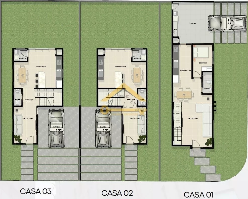 3 casas individualizadas, em ótima localização, agregando conforto e praticidade, dentro de um loteamento amplo e seguro.