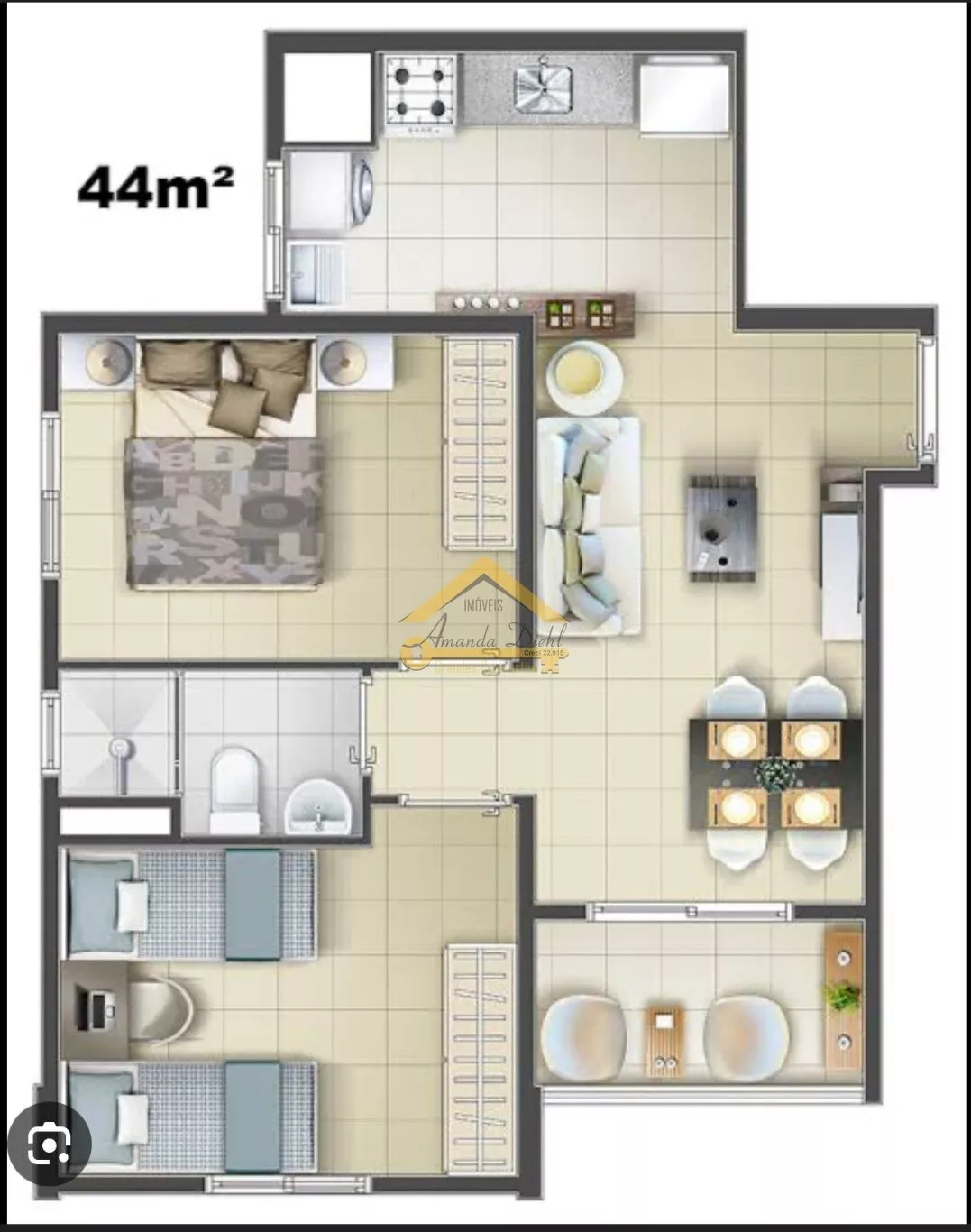 | Dormitórios: | (2) dormitório(s) sendo (2) suíte(s) | |