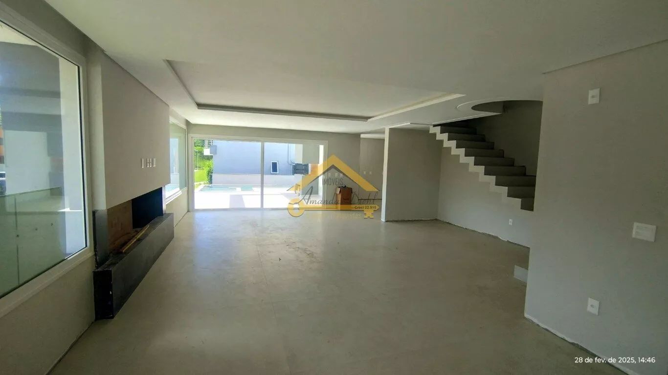 Amplo living com lareira a lenha, proporciona um ambiente aconchegante e moderno. Com lavabo, cozinha com espera para ilha, despensa e área de serviço. Na área externa, espaço gourmet com churrasqueira e piscina privativa com hidromassagem e banheiro de apoio.