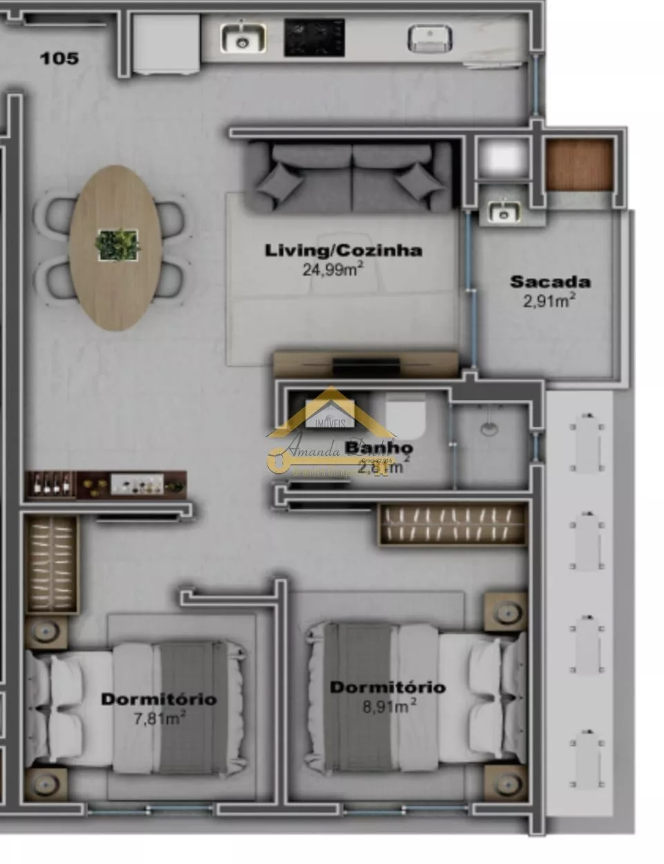 | Dormitórios: | (2) dormitório(s) sendo (1) suíte(s) | |