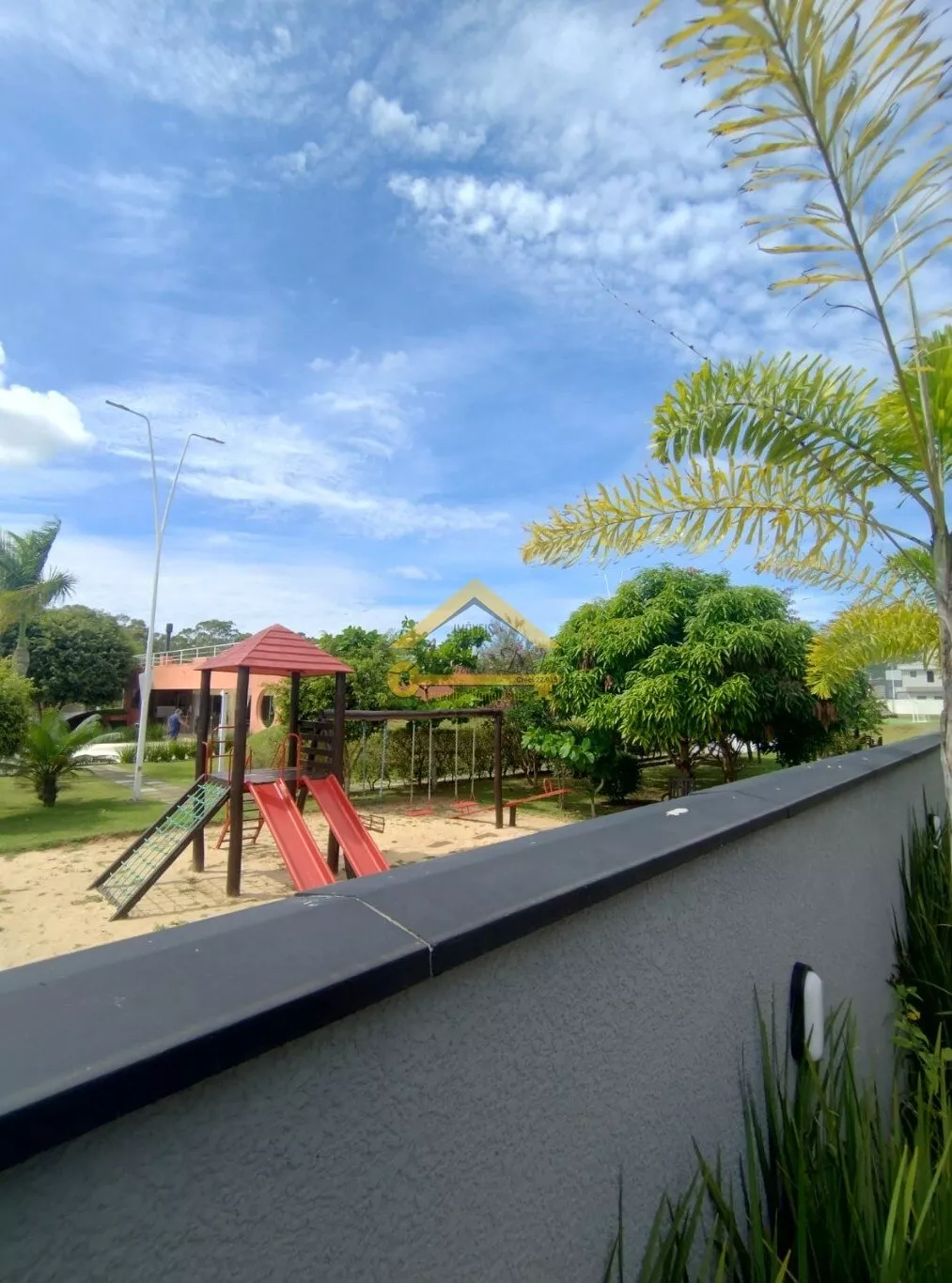 O condomínio oferece uma estrutura completa, com piscina, quadra de futebol, amplo espaço de convivência e salão de festas.