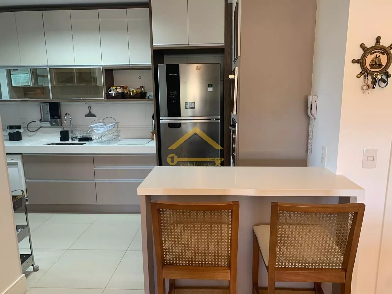 03 dormitórios sendo 03 suítes + 02 vagas de garagem, sacada com churrasqueira.
