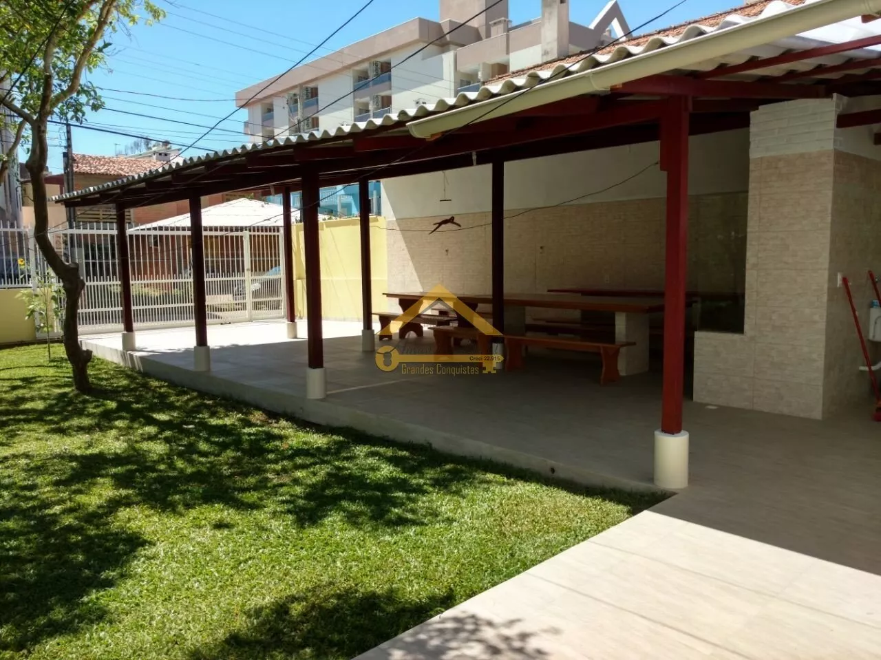 Casa com 04 quartos sendo 01 suíte, 02 banheiros, sala, cozinha, área de serviço com maquina de lavar, sacada, ar condicionado, churrasqueira, alarme com monitoramento, plano de TV acabo, internet, ventilador, 05 vagas de garagem coberta.