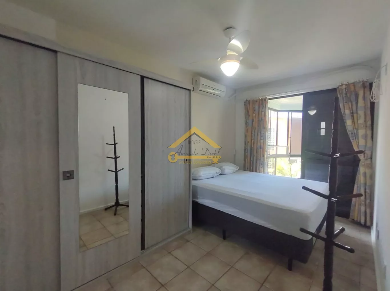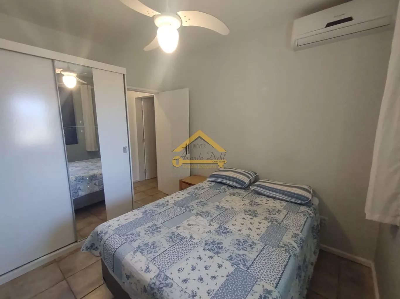 Ar condicionado na sala, suíte e quarto de casal.